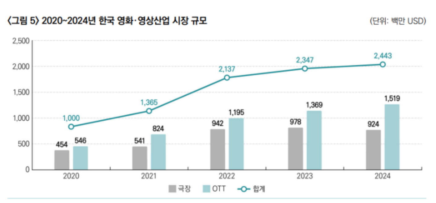 - 극장 산업 붕괴: 한국의 극장 시장은 팬데믹 이후 반토막 난 채 회복하지 못하고 있습니다.