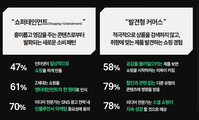 핵심은 흥미로 시작되는 쇼핑경험에 있습니다. 흥미로 유발된 콘텐츠로부터 공감을 얻는다면 더이상 지갑을 여는데 주저하지않는다는 점입니다.
